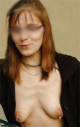 Figur / Haare: Dünne Frau mit kleinen Hängetitten mit Nippel Piercings / rothaarig